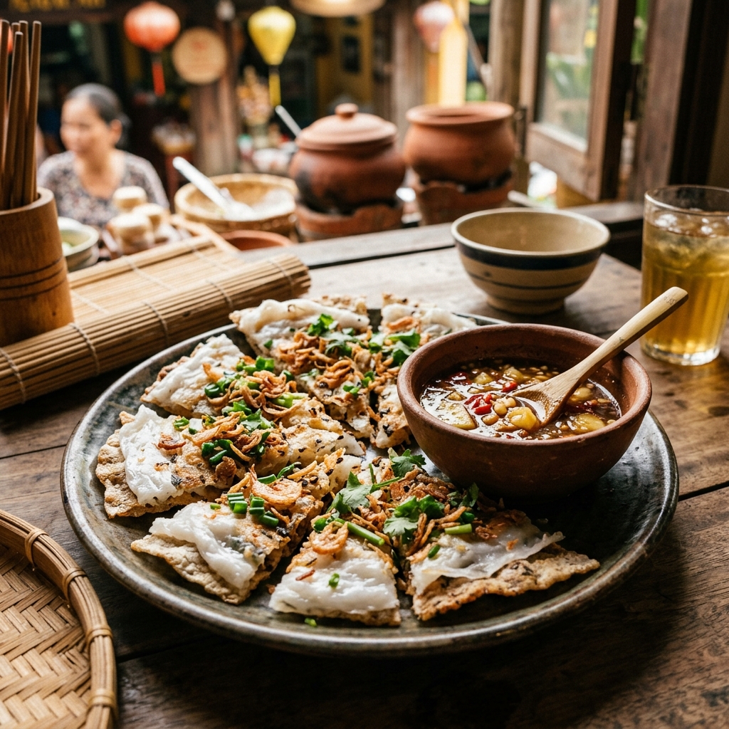 Cách nấu Bánh Đập Hội An chuẩn vị Việt Nam. Công thức Bánh Đập Hội An chi tiết từng bước với 5 nguyên liệu, thời gian nấu 20 phút, chỉ 250 kcal.