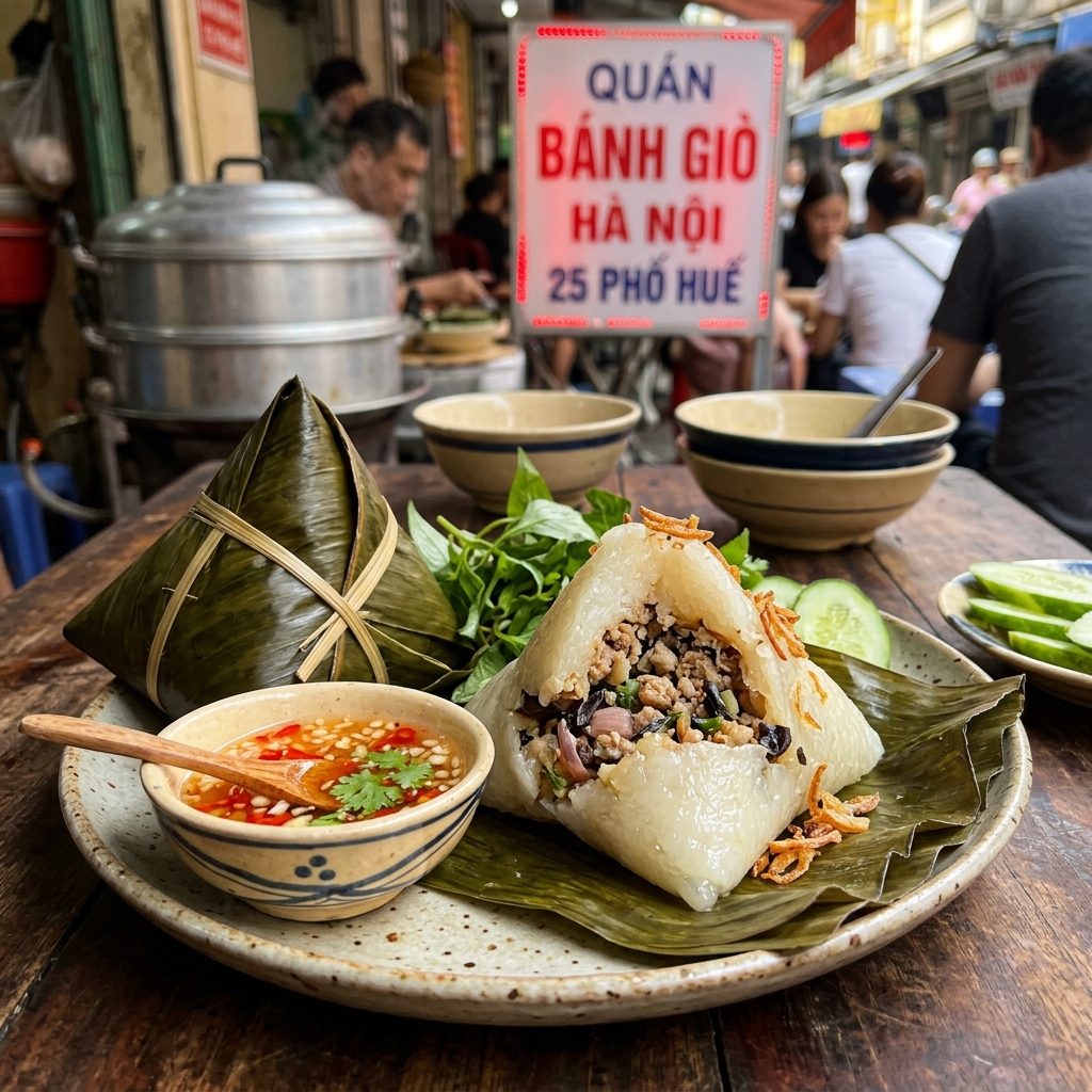 - Thưởng thức: Bánh giò ăn nóng, bóc lá chuối. Chấm nước mắm chua ngọt hoặc ăn kèm giò chả. Mẹo: Ăn nóng mới dẻo mềm — nguội sẽ cứng lại.