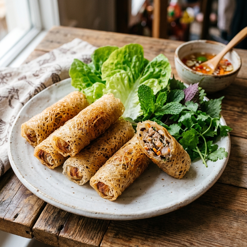 Chả giò rế – vỏ giòn rụm vàng óng, nhân thịt tôm ngọt thơm. Đặc sản miền Nam không thể thiếu trong mâm cỗ.