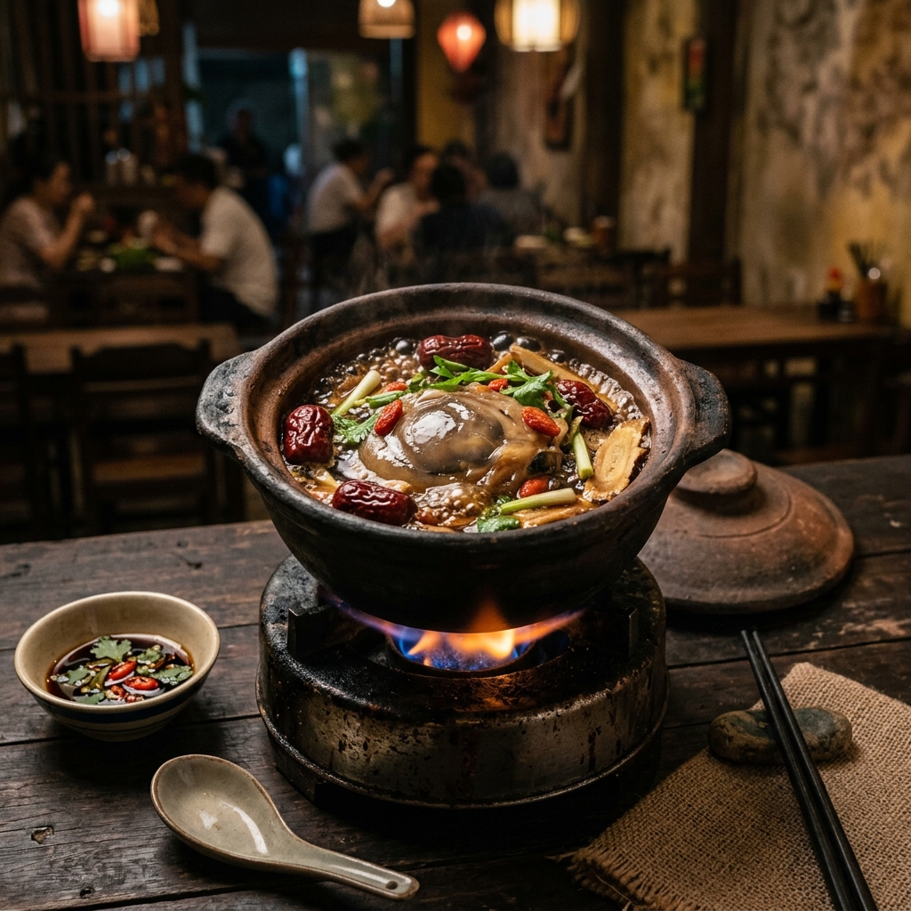 Mắt Cá Ngừ Đại Dương - Danh bất hư truyền 'Đèn pha đại dương' mạn Phú Yên. Những con mắt cá to bằng bát con được thui lửa bốc hương nấu lẩu tiềm thuốc bắc trong thố đất. Vị béo gậy túa ra từ dịch nhãn cầu đại dương hòa trộn gia vị kỷ tử nồng đượm, bổ dưỡng cực độ nhưng sành ăn mới xơi được.